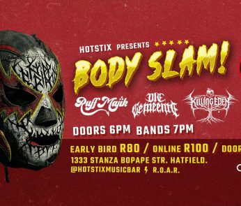 Add to Wishlist BODY SLAM Feat. Ruff Majik, Die Gemeente, Killing Eden, Diverted Disorder – HotStix, Pretoria A stacked night of heavy music hits Hatfield on 29 May